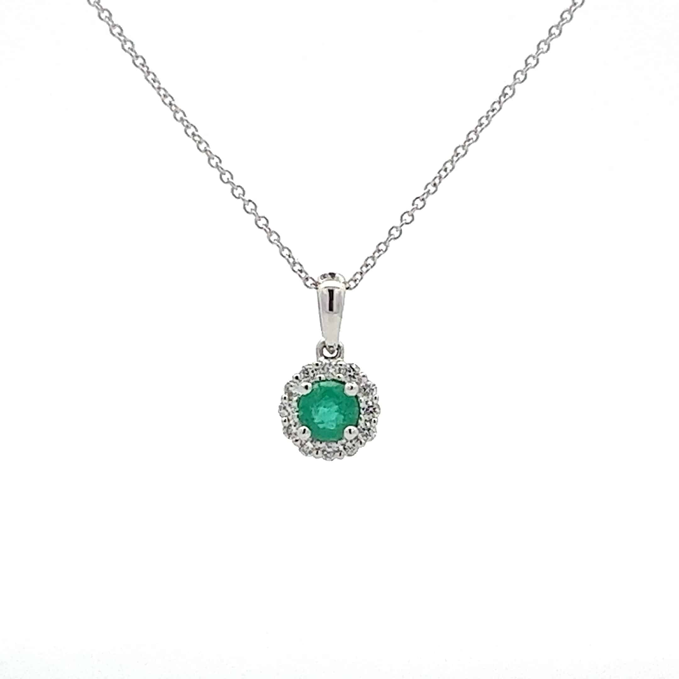 At the heart of this stunning piece lies a beuatiful emerald, elegantly framed by a halo of brilliant-cut diamonds.