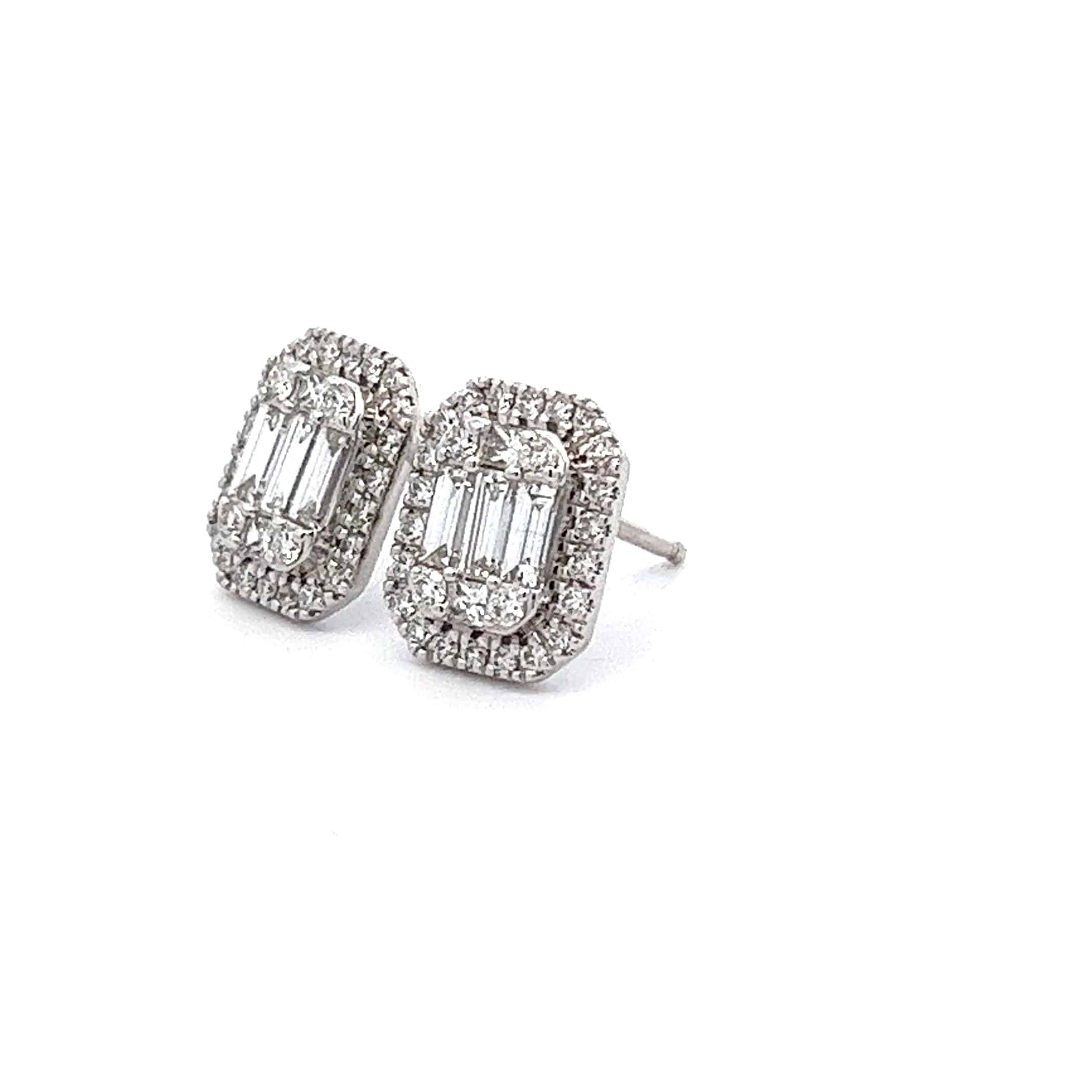 Brilliant cut, baguette cut and princess cut diamonds combine beautifully to create these striking 18ct white gold diamond cluster earrings.