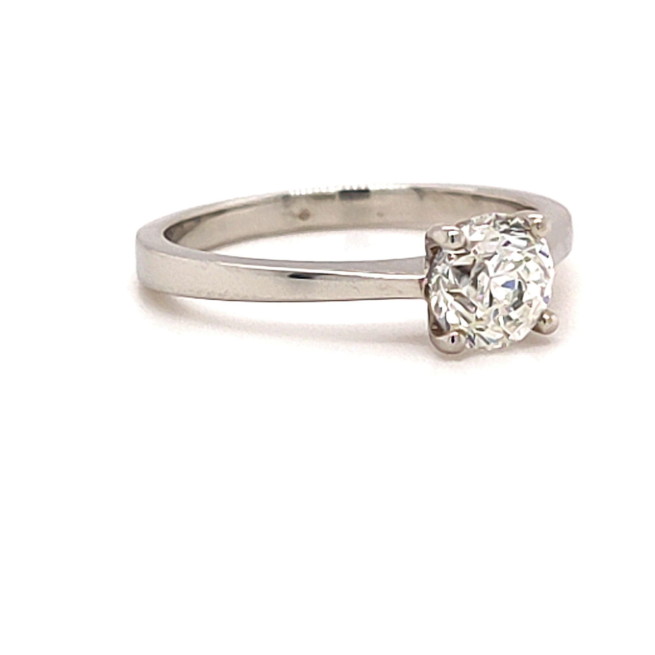 This simple four platinum ring truly shows off the brilliant cut Diamond, to create an enduring and beautiful solitaire design engagement ring.