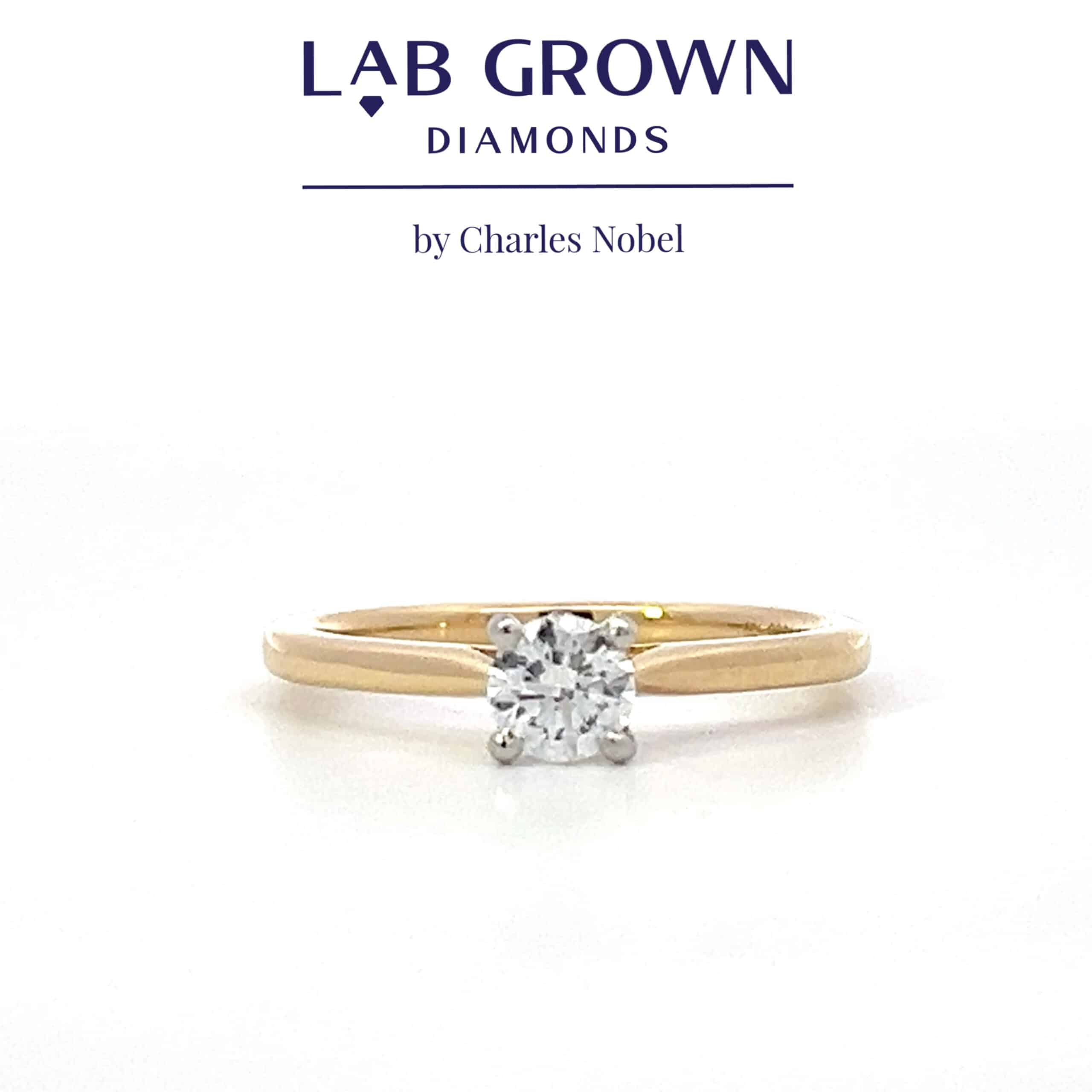 Elegantly capturing timeless beauty, this 18ct yellow gold and platinum solitaire ring is set with a stunning 0.33ct lab-grown brilliant-cut diamond.