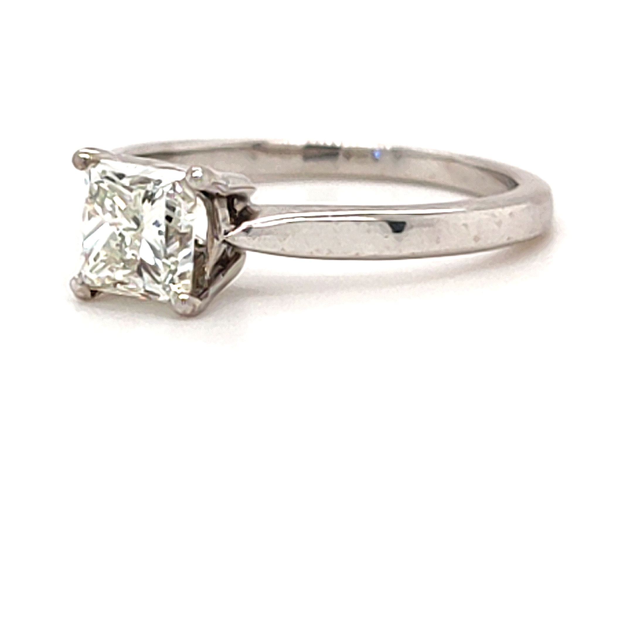 This beautiful Princess cut Diamond has been set in a simple four claw setting to create an enduring and striking engagement ring.