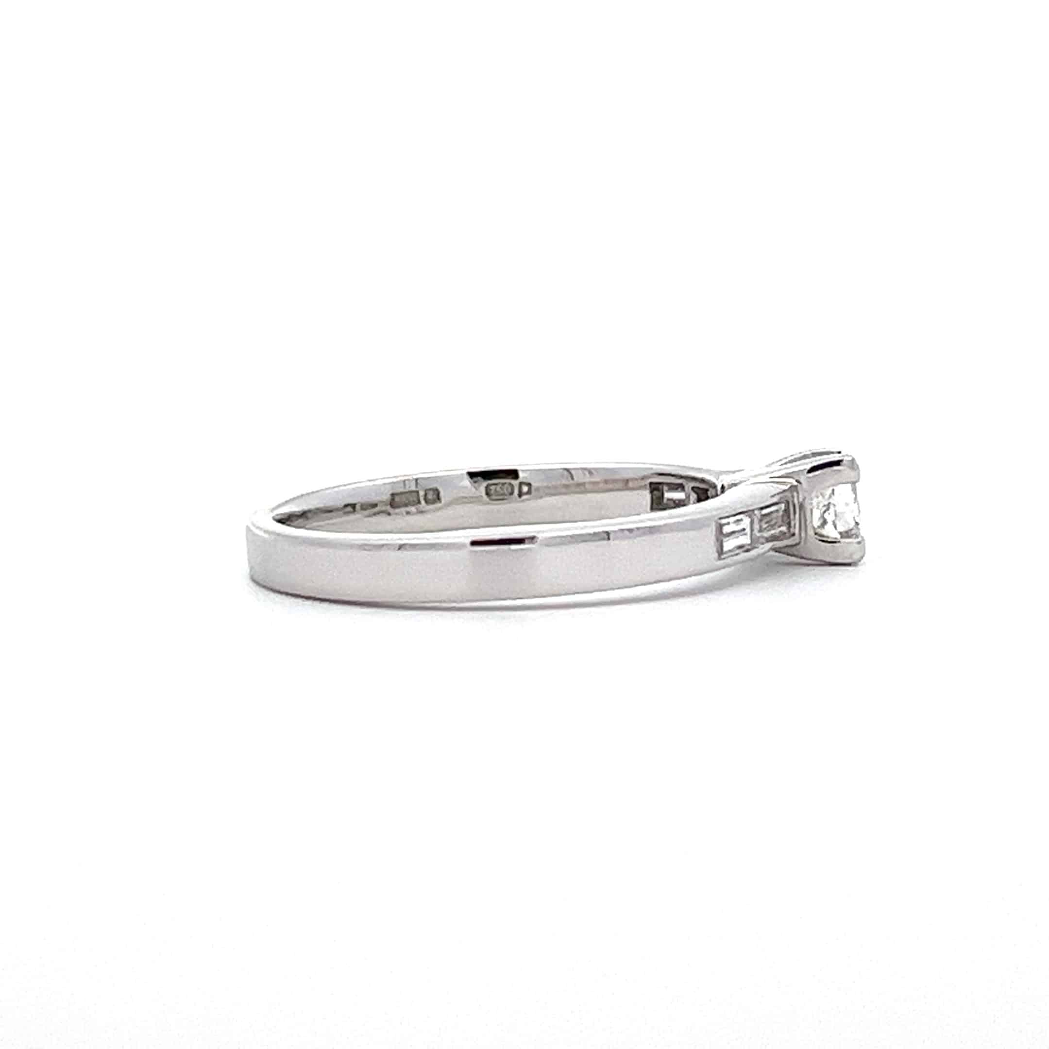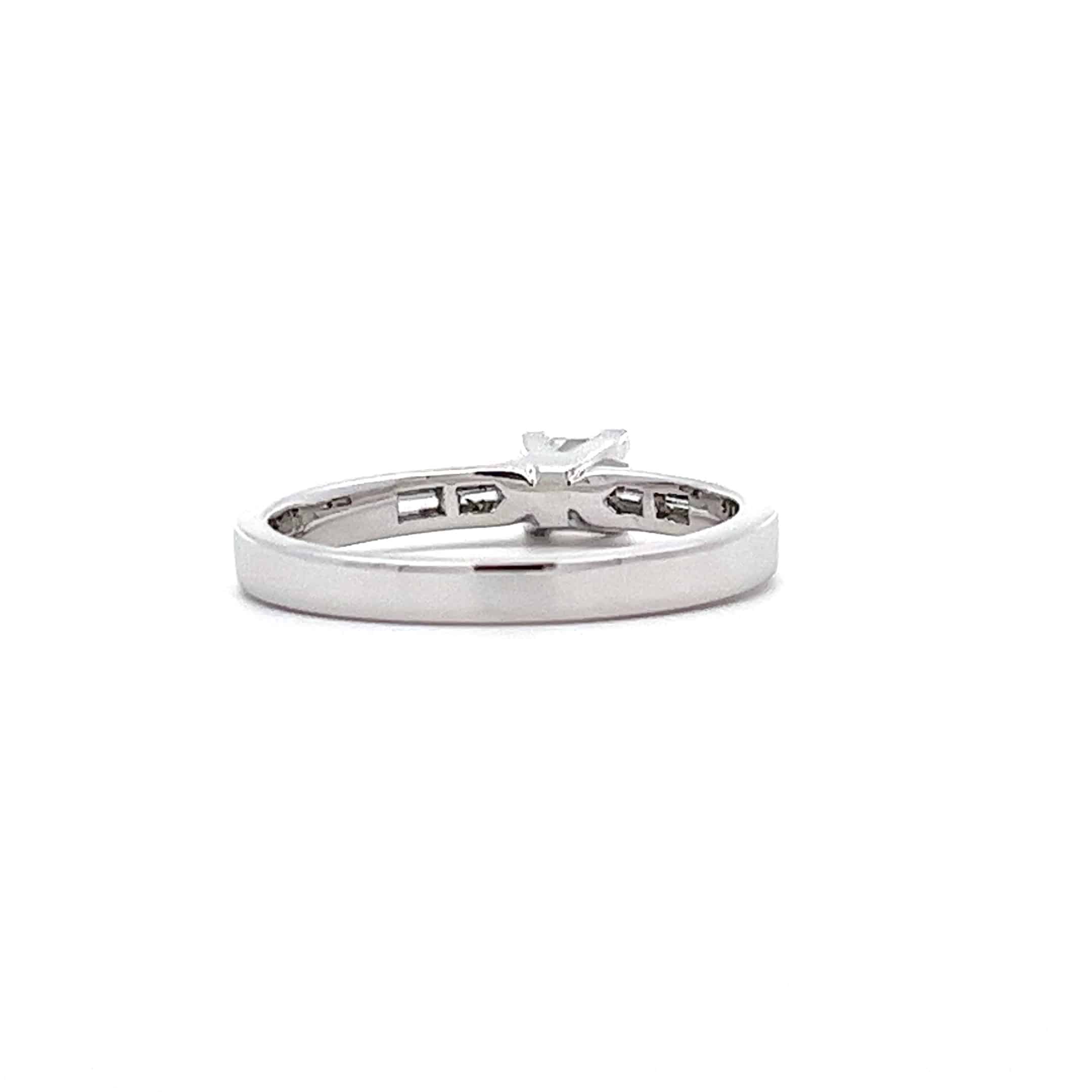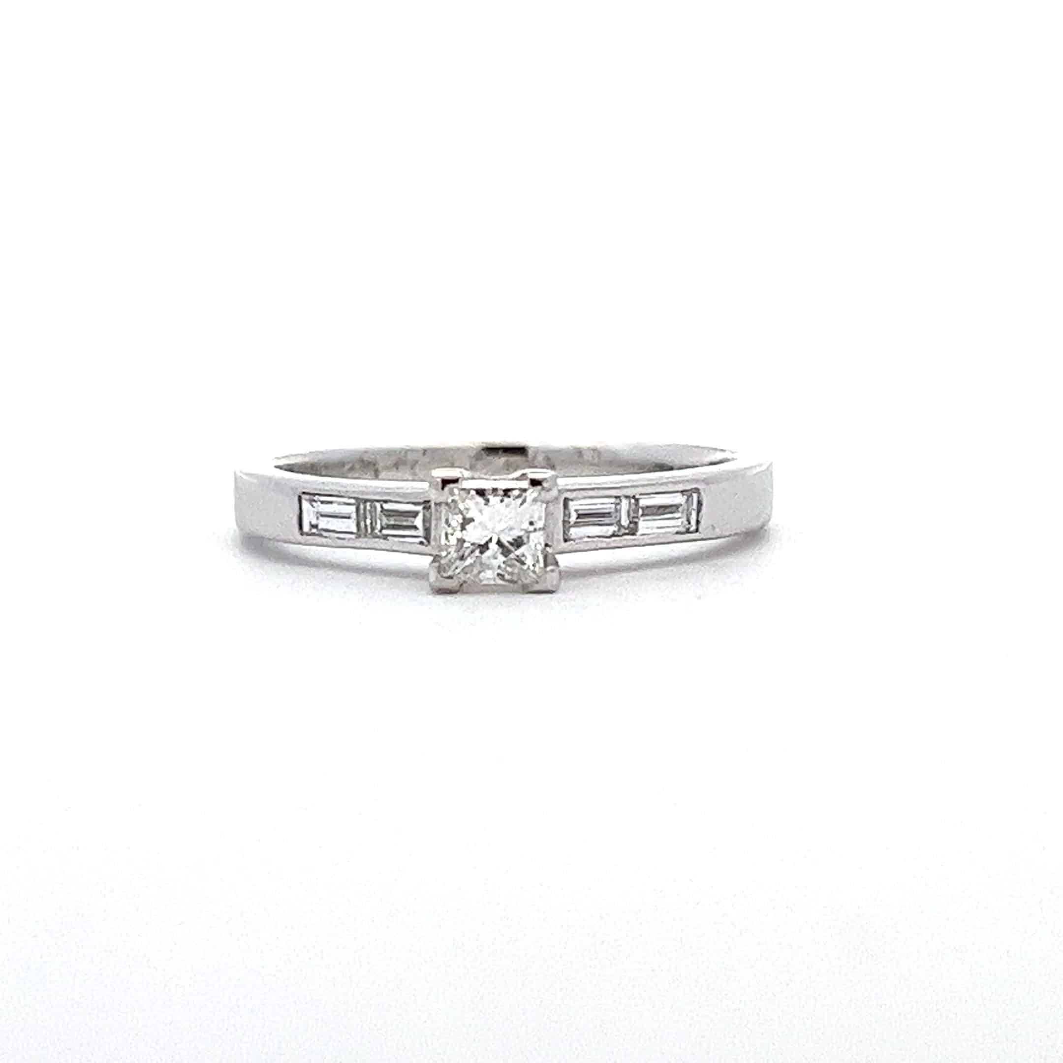 18ct White Gold Mounted Princess Cut Diamond Ring with Baguette Cut Shoulders