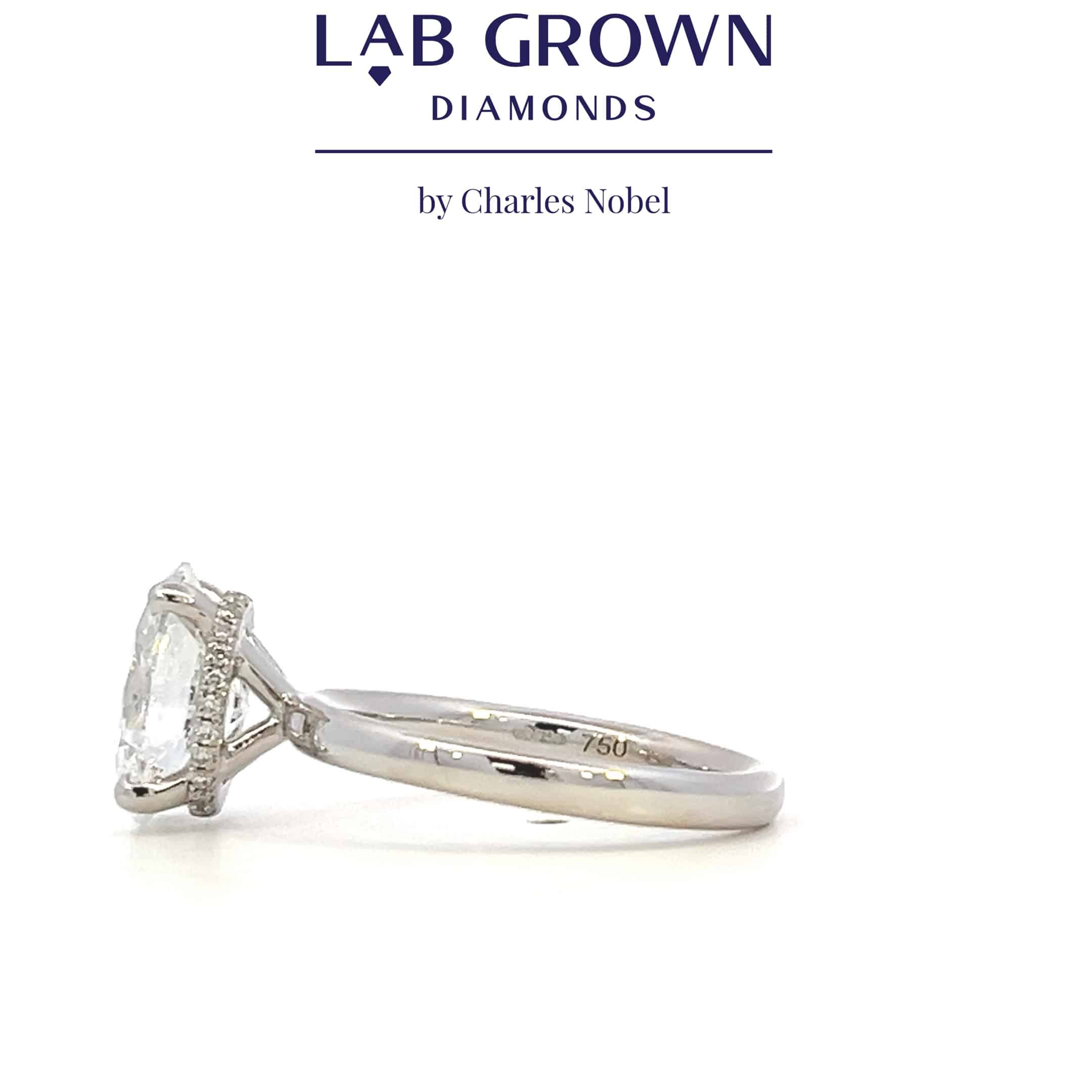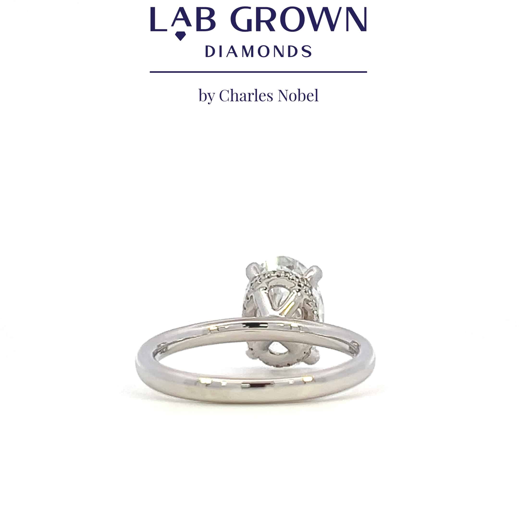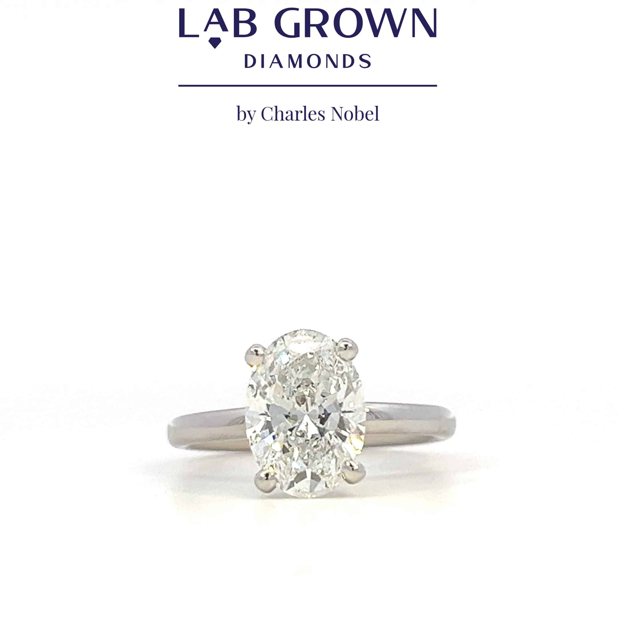 Sleek 18ct white gold ring featuring a 2.02ct oval lab-grown diamond, boasting F colour and VS2 clarity.