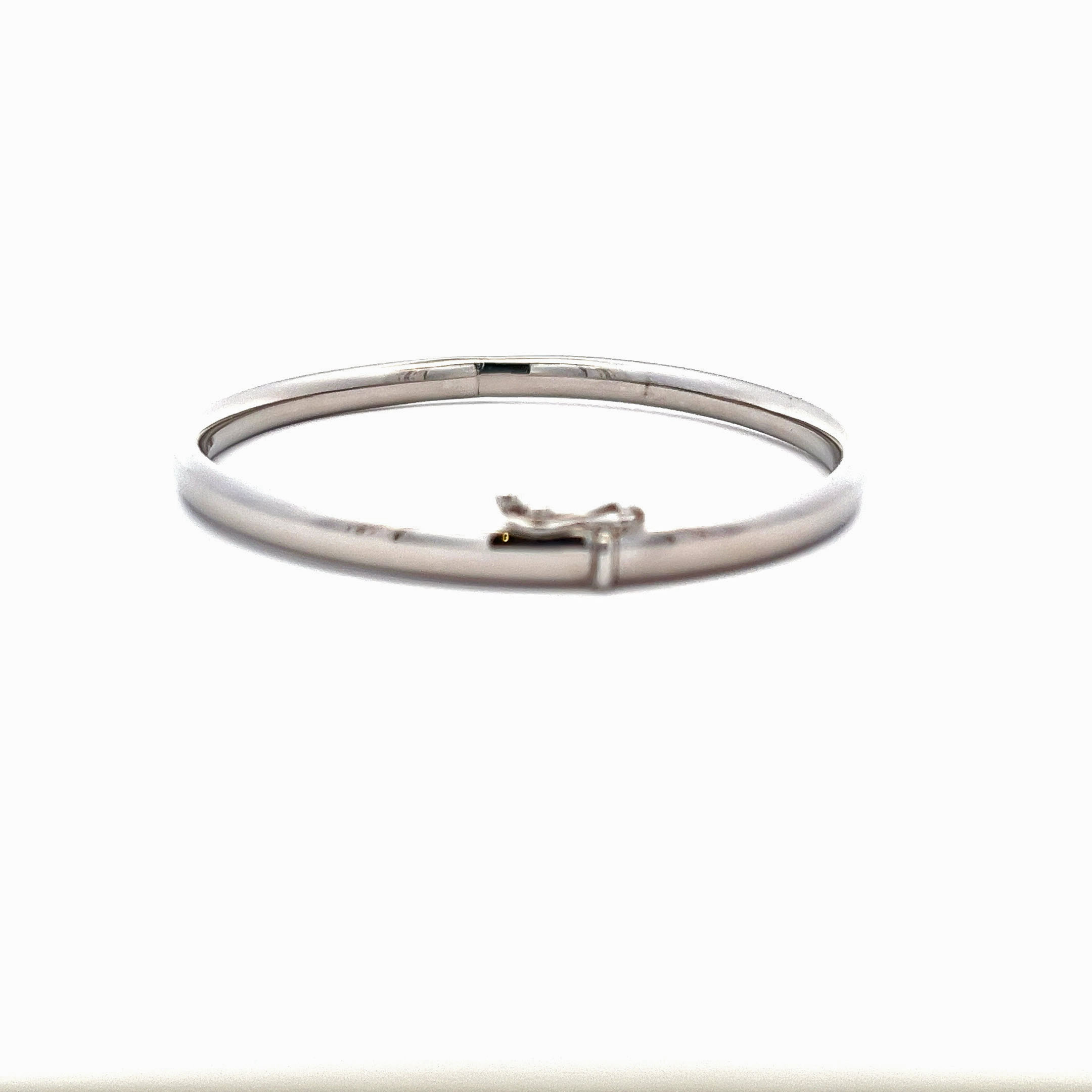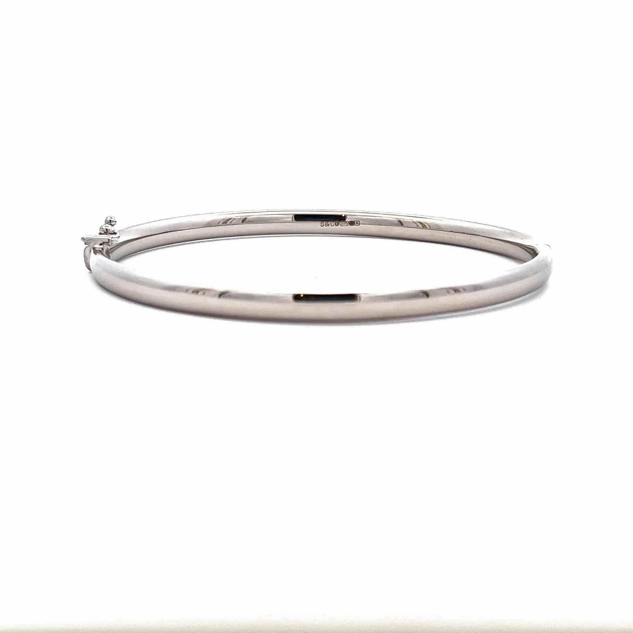 Our court shaped solid bangle offers excellent durability for everyday wear and is completed with a figure of eight safety catch to compliment the box clasp.