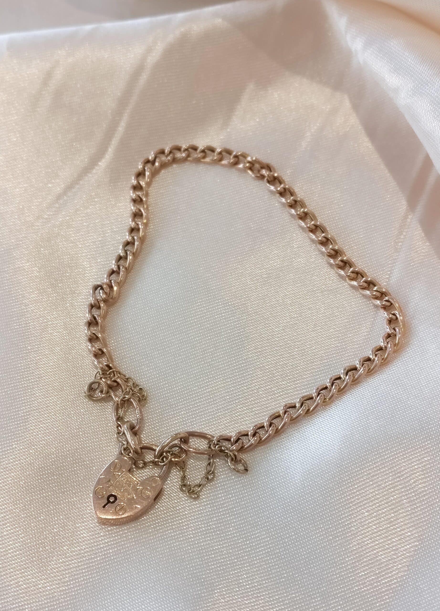 This delicate 9ct yellow gold curb link bracelet with padlock and safety chain would look great worn on its own or as a layered piece with other bracelets.