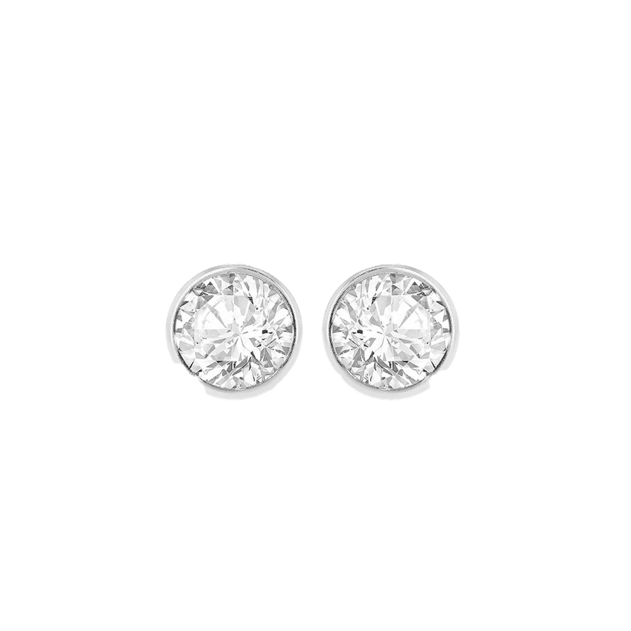 9CT WHITE GOLD 6.5MM BEZEL ROUND CZ STUD EARRINGS