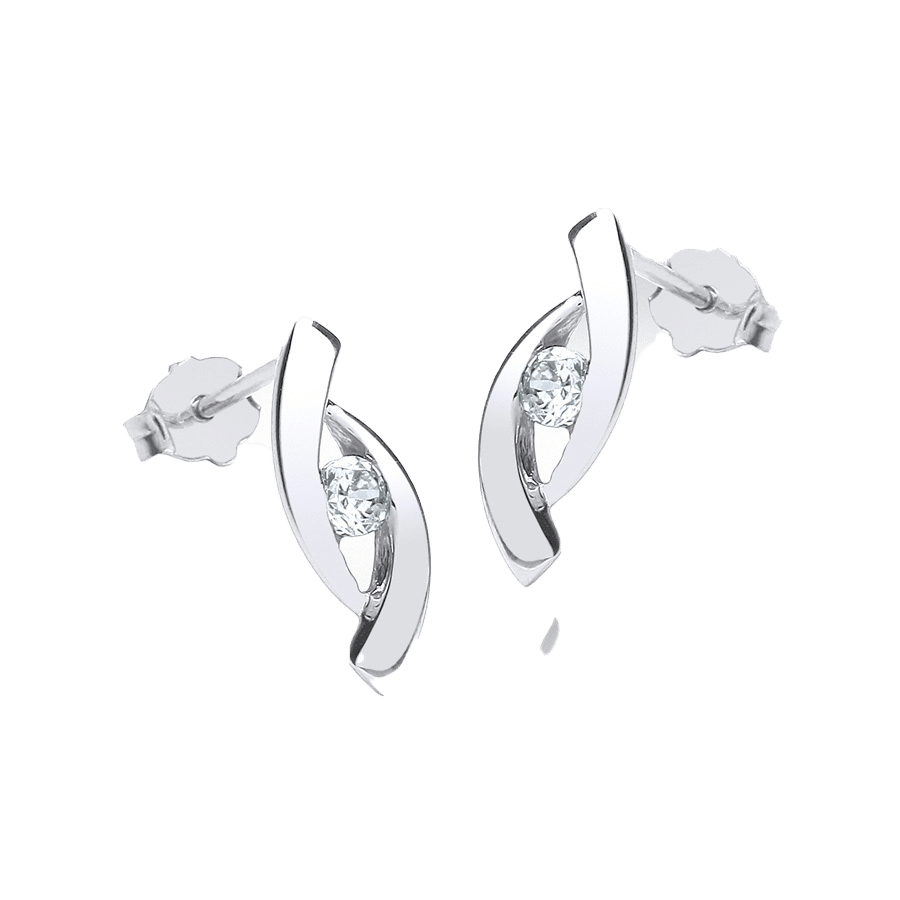 9ct White Gold CZ 4mm x 12mm Crossover Stud Earrings