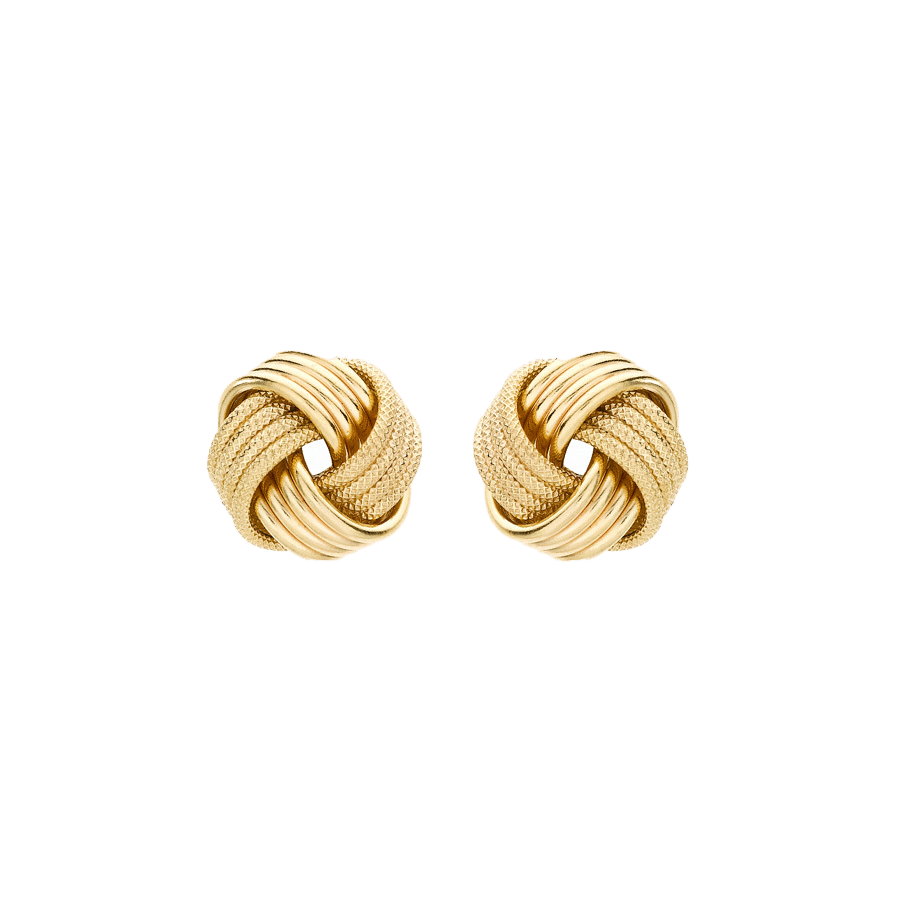 9ct Yellow Gold 11mm Half and Half Polished and Textured Knot Stud Earrings.