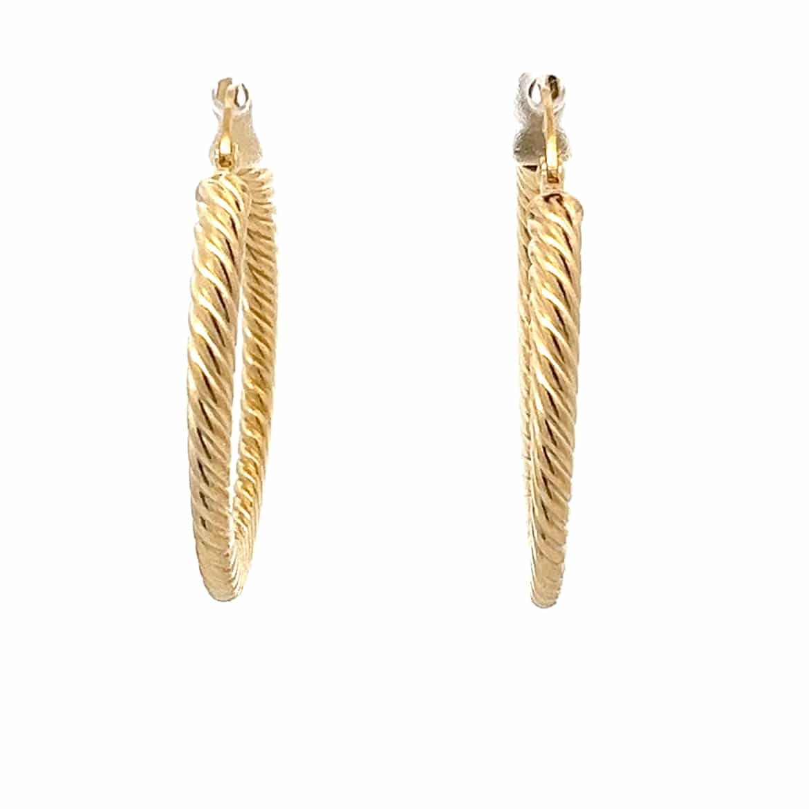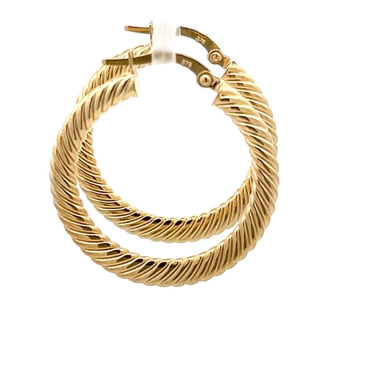 9ct Yellow Gold Fine Twist Texture Earrings with hinge fastening.