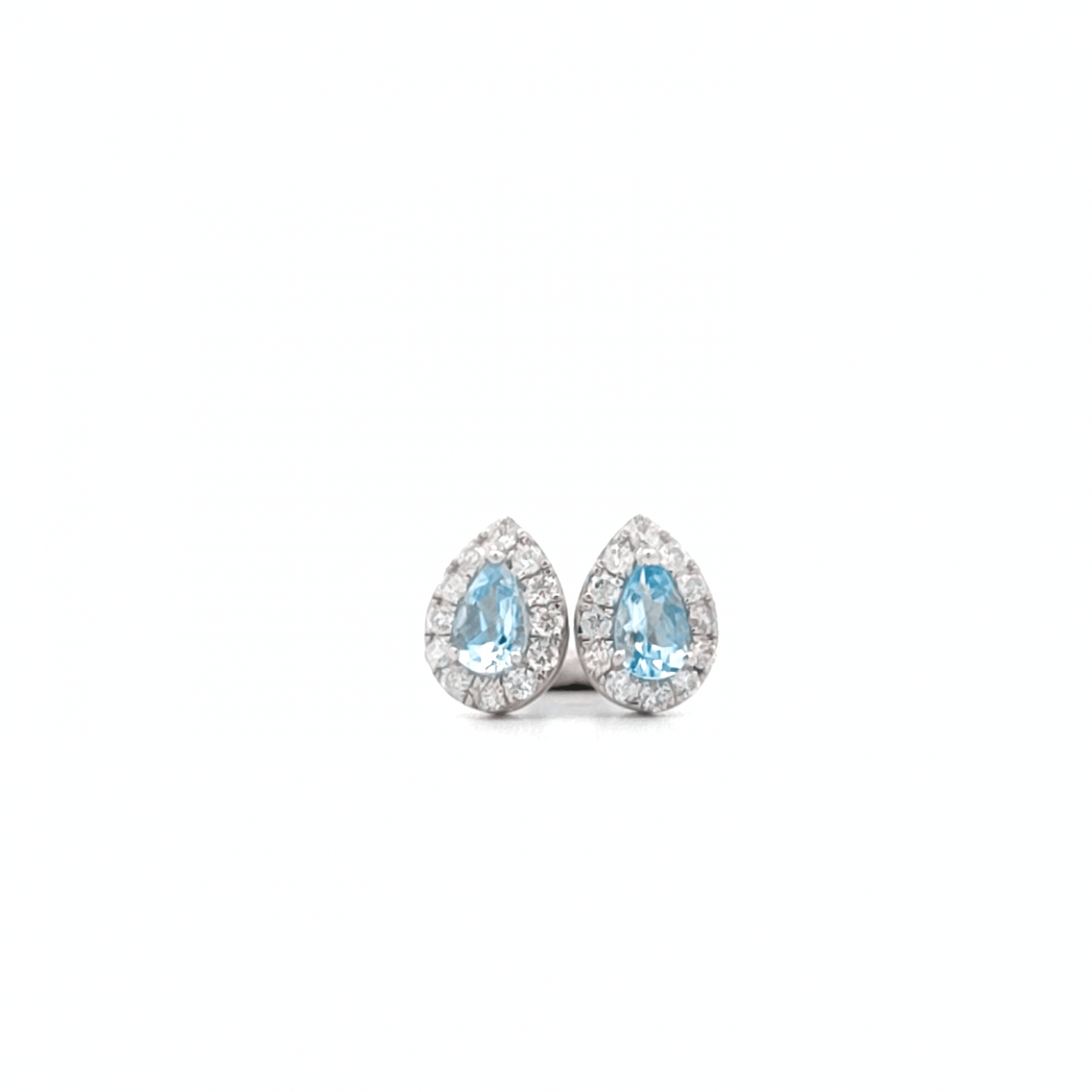 These studs, with their tranquil blue aquamarine stones and halo of twinkling diamonds, offer a subtle yet striking sparkle for everyday wear.