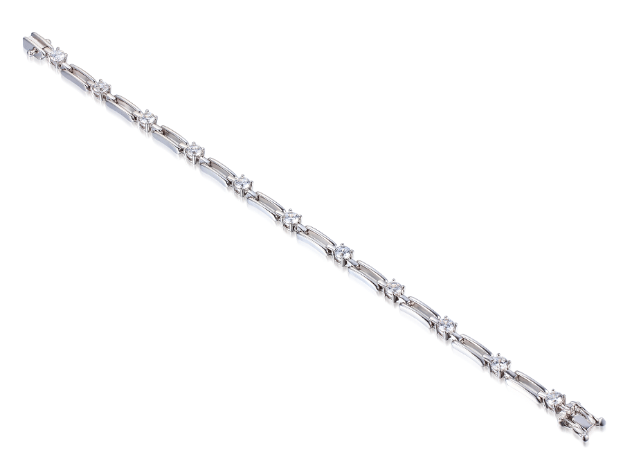 This alternating open silver link and Cubic Zirconia design bracelet is perfect for both day or evening wear.