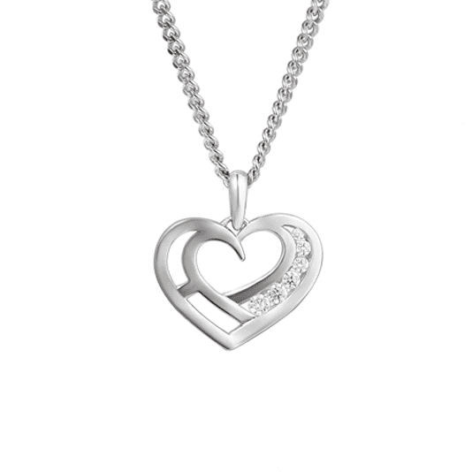 ‘Love You’ Silver and Cubic Zirconia Heart Necklace