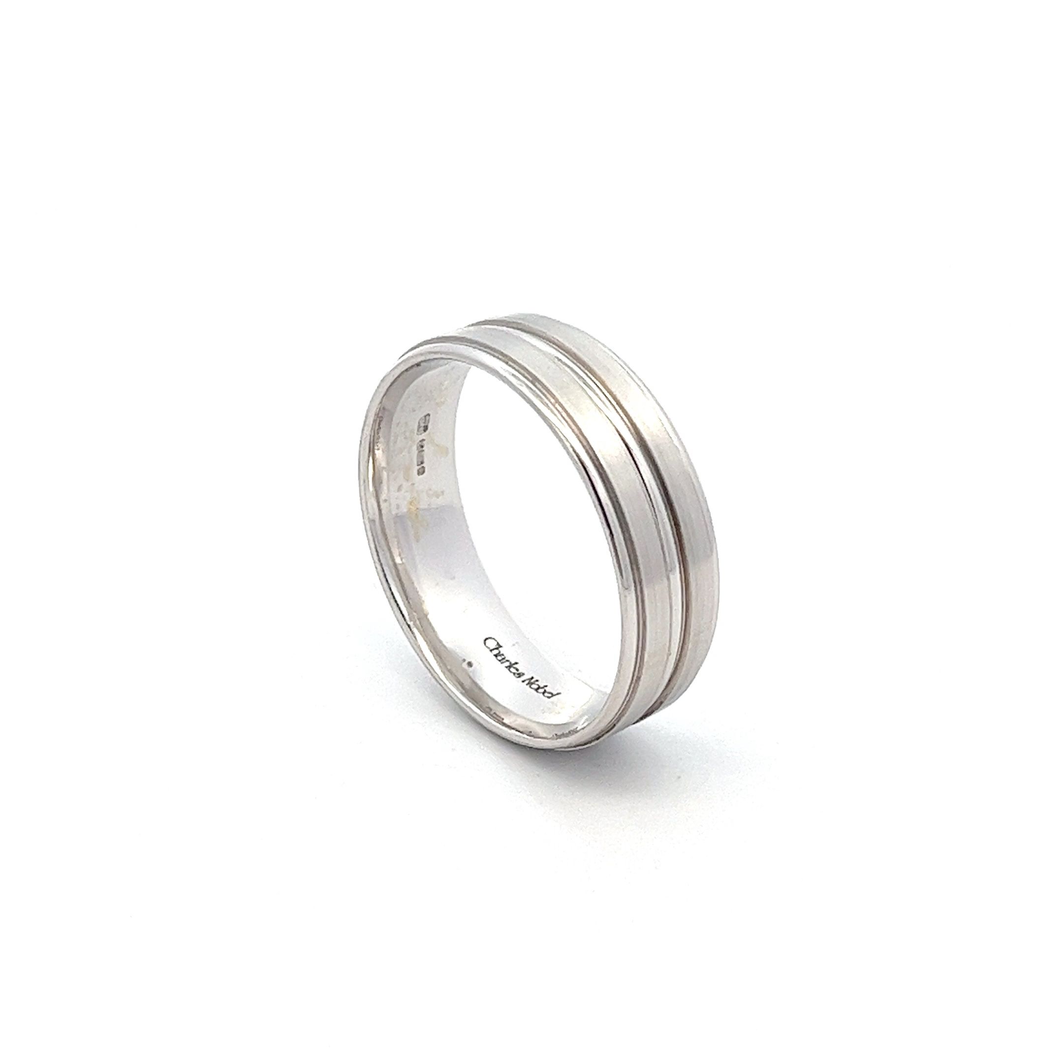Our hand crafted flat top profile in brushed finish with contrasting polished roll detailing, presented in a medium gauge.