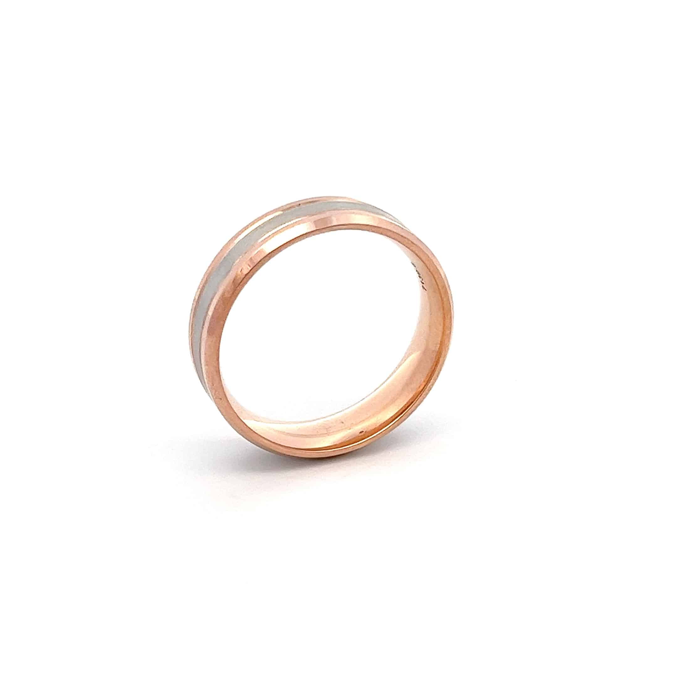 Handcrafted ; our flat top profile with v-cut and bevelled edges in contrasting colour inner, presented in a medium gauge.