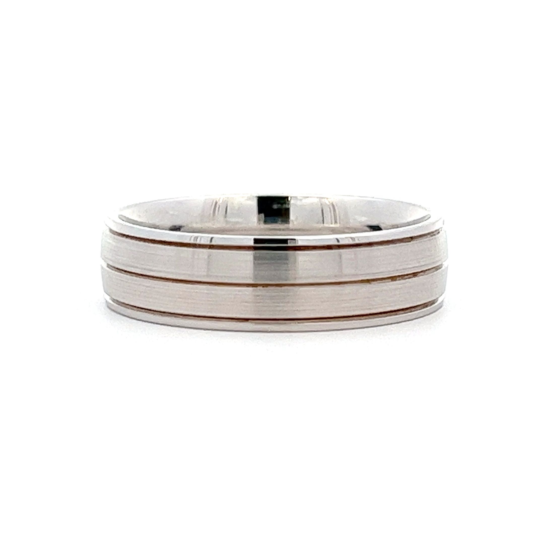 Another popular choice for clients that are looking for something a little more than a plain wedding band. Finished with a comfort fit interior the matt and polished finishes combine to create a unusual design of ring.