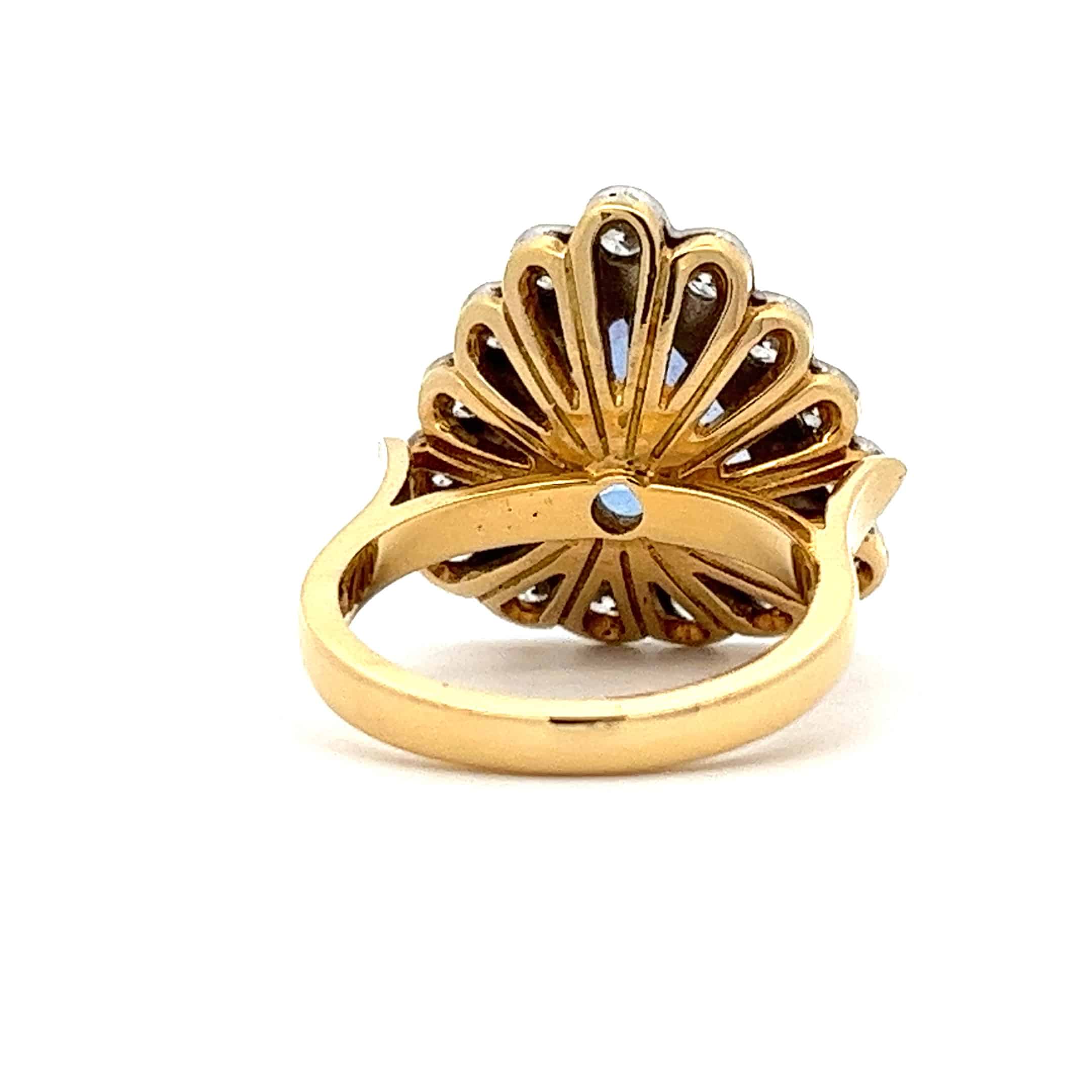 Step into a world of exquisite elegance with our preowned dress ring, showcasing a mesmerizing 5.50ct trilliant cut Tanzanite.