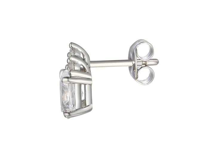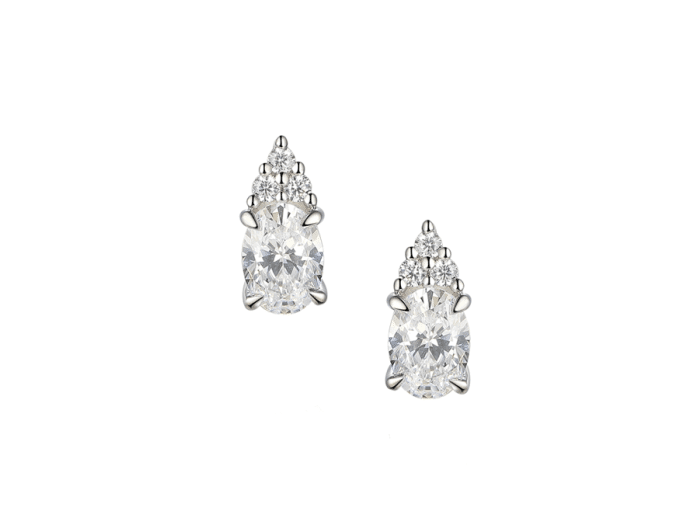 Captivating earrings containing a beautiful oval cubic zirconia and enhanced with 3 round cubics in a triangular formation at the top. Cubic zirconia replicates the look of diamond, it is strong, durable, looks great, and is high quality, adding sparkle and shine to any design. Matching Necklace available.