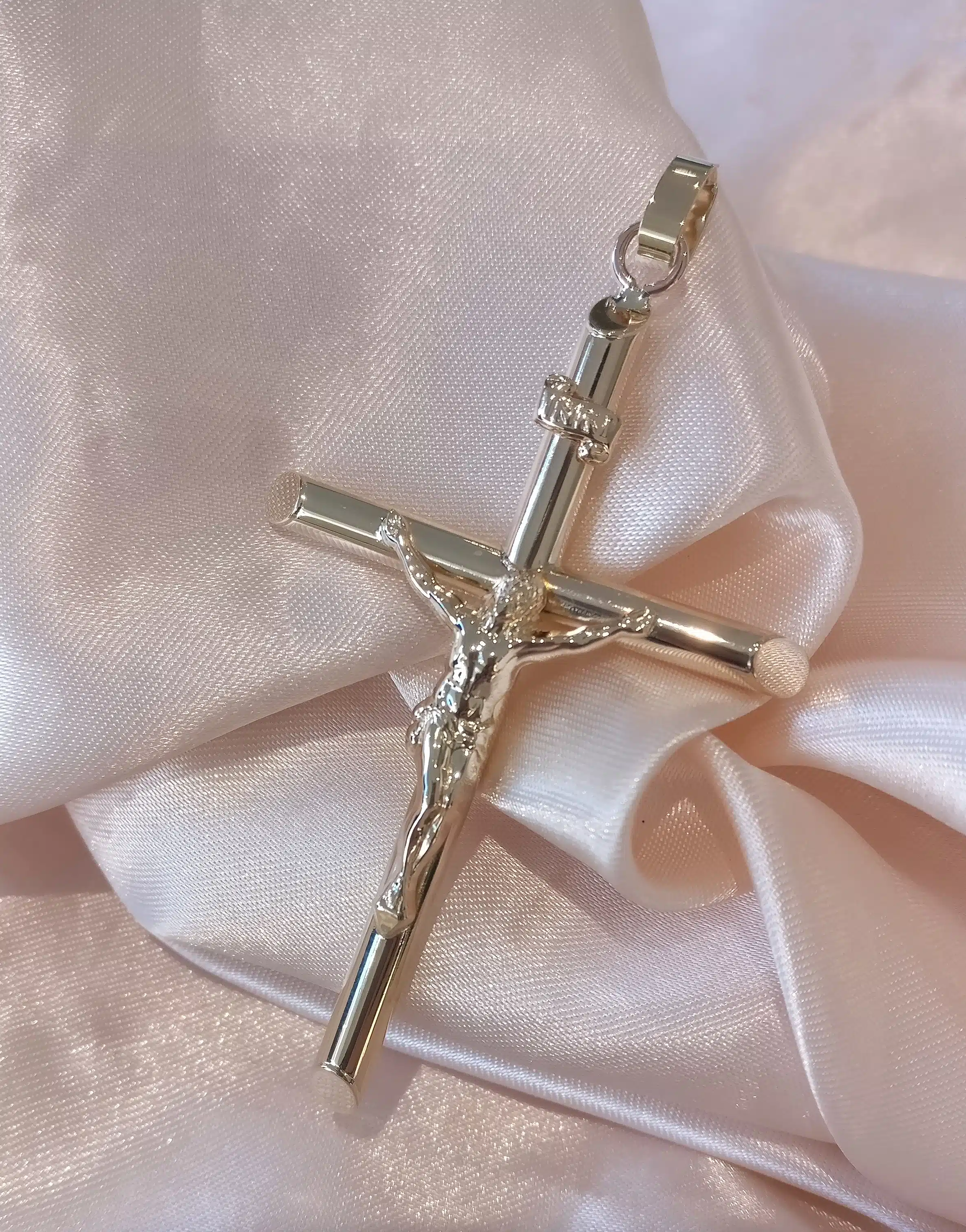 This pre-owned large crucifix crafted in 9ct yellow gold measures 2 1/2 inches long and 1 1/2 inches wide –a standout piece! Don’t miss your chance to own this  eye-catching piece to express your faith or style.